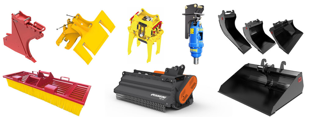 Här hittar du bl a redskap för grävning, kabelförläggning, järnvägsarbeten, trädgårdsskötsel, sopning, rivning/demontering och mycket mer.